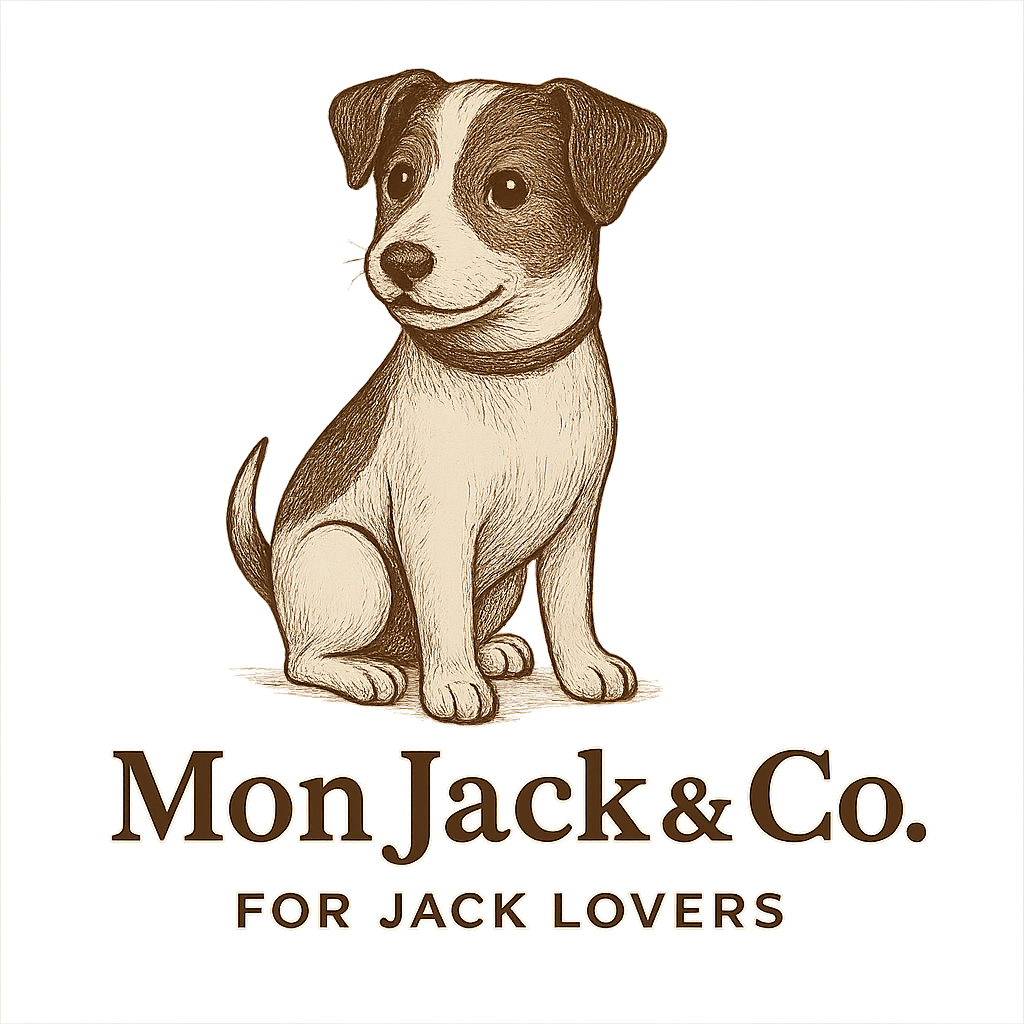 ジャックラッセルのイラストとロゴを、さりげなく配置しました。
